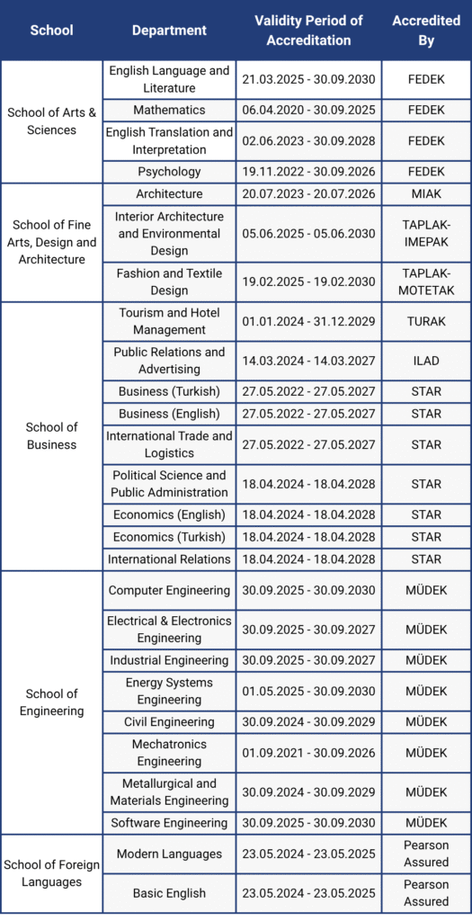 | Electrical & Electronics Engineering | 30.09.2025 - 30.09.2027 | MÜDEK | Download | View | |